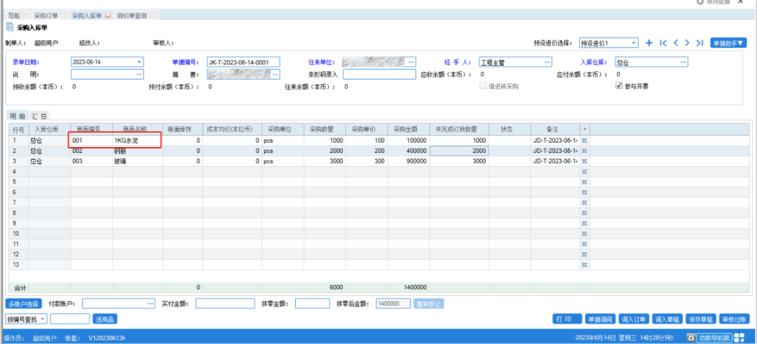 4、允许在采购入库时修改材料名称,保证数据的完整性和一致性。